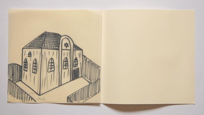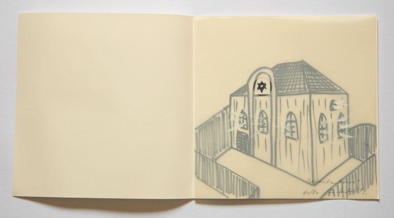 Technik: Zeichnung mit Fasertift und weiß auf Transparentpapier, gestanzt, in leinengebundener Kassette