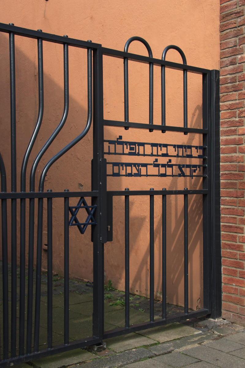 - Von dort weist ein Schild auf den Eingang zur Synagoge