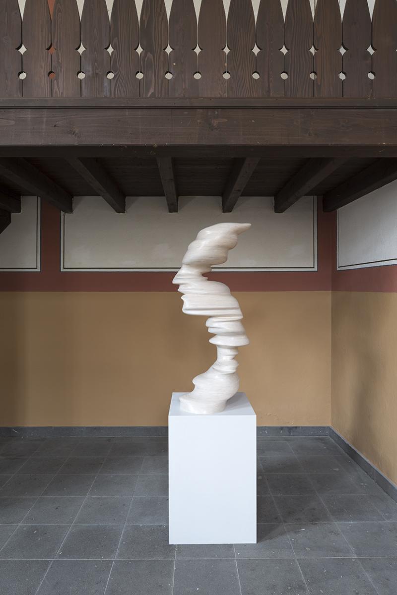„Pair ist eine Skulptur, die gleichzeitig einfach und komplex ist. Ihre Zusammensetzung aus gestapelten Scheiben ist leicht zu erkennen, ihre optische Wirkung bleibt jedoch stets herausfordernd und überraschend. Sie trägt Bewegung in sich und fordert vom Betrachter ebenfalls Bewegung. Erst wenn man die Skulptur umkreist und den Standpunkt wechselt, wird der visuelle Reichtum der Skulptur erfahrbar. Sie ist erfahrbar als ein Paar gegensätzlicher Figuren, in denen beim Betrachten und Umschreiten unterschiedliche Gesichter erscheinen und wieder verschwinden. Die Gegenwart von Personen wird beschworen und gleichzeitig als Illusion entlarvt. Die Erfahrung der Skulptur ergibt eine widersprüchliche, äußerst anregende Mischung aus Faszination und Desillusionierung. Wie verhält sich das Paar zueinander? Wie verhält es sich zum Betrachter? Wie viele Personen stecken in der Skulptur? Selbstverständlich gibt die Skulptur keine eindeutige Antwort, sie regt den Betrachter jedoch immer wieder neu dazu an, hinzuschauen und sich überraschen zu lassen. Die Lebendigkeit der Skulptur steigert unsere Aufmerksamkeit, und viel mehr muss man von einem überzeugenden Kunstwerk nicht erwarten.“ Kay Heymer (Auszug aus "Anthony Cragg, Pair 2015. Eine Umkreisung", Publikation zur Ausstellung)